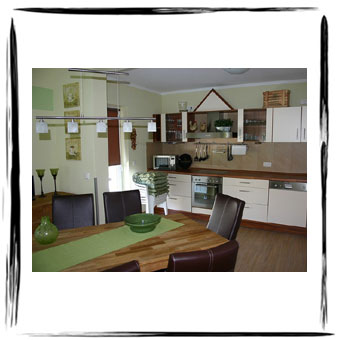 Das Ferienhaus "Sabrina" ist modern und gemütlich eingerichtet. Es besteht aus einem großzügigen Wohnraum mit Eßplatz und gemütlicher Sitzgruppe, TV, DVD, Stereo-Anlage und einer Einbauküche, die offen zum Wohnraum ist. Die Küche ist komplett eingerichtet (Spülmaschine, Herd mit Backofen, div. Küchengeräte). Ein Schlafraum hat ein Doppelbett und der andere zwei Einzelbetten. Eine Dusche/WC steht ebenso zur Verfügung wie eine Terrasse mit Sonnenmöbel sowie 1 Parkplatz am Haus. Haustiere sind nicht gestattet.